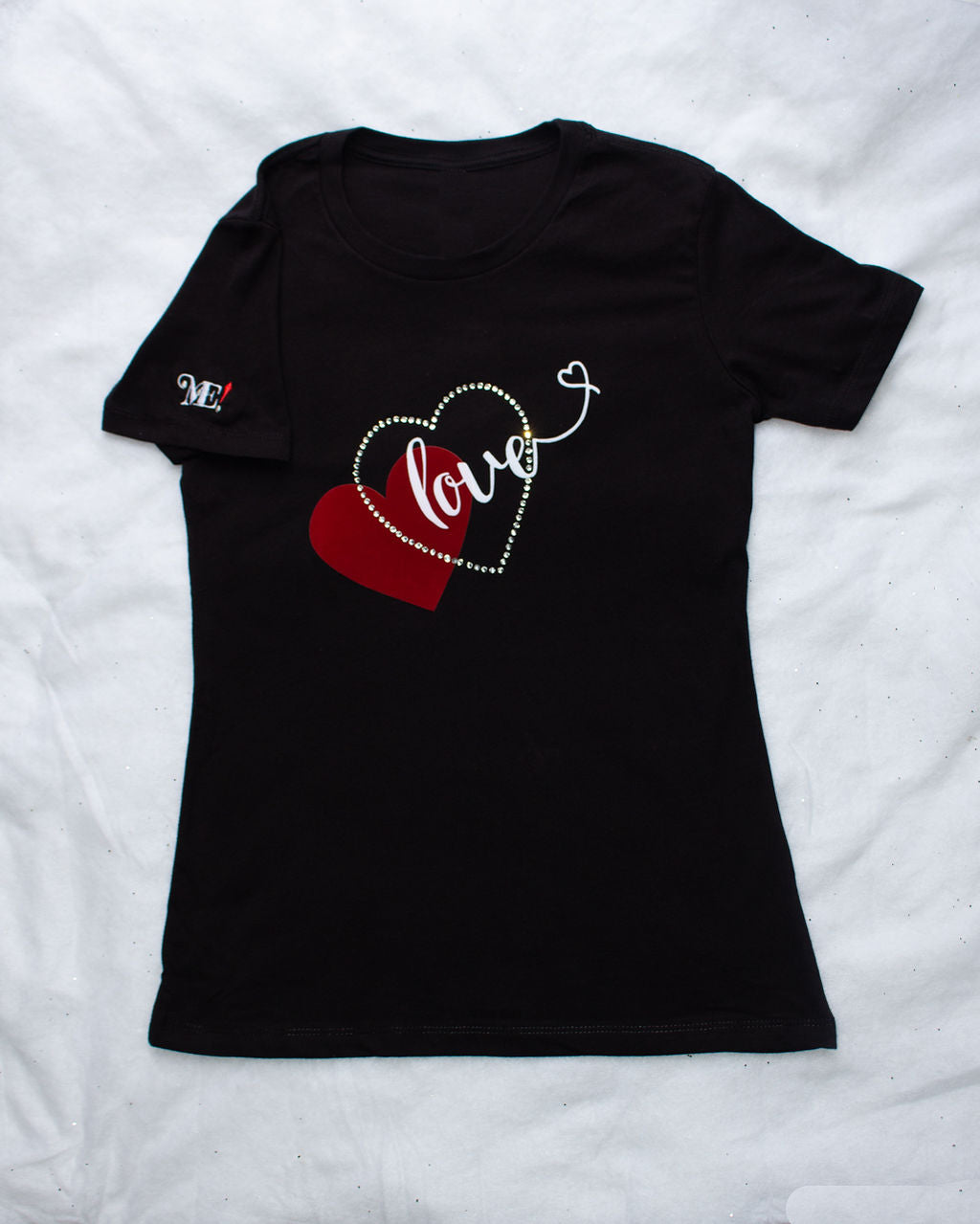 Two hearts modern style with vintage vibe. Double hearts red flock and rhinestones